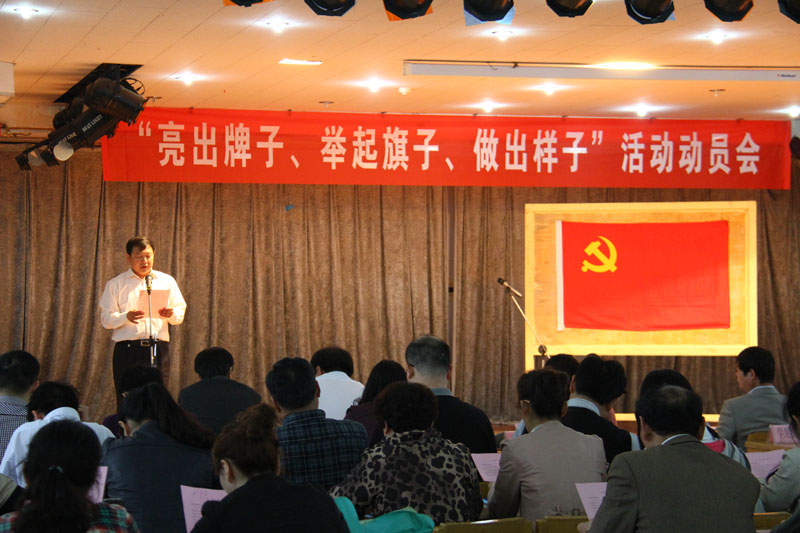 胡景团副书记在会上要求全体党员干部要继续深入学习贯彻领会党的十八大精神和花明书记的讲话精神,进一步加强基层组织建设;要积极佩戴党员徽章上岗,自觉做出表率;各支部要制定具体实施方案,将“亮出牌子、举起旗子、做出样子”活动落实到实处。(党办)