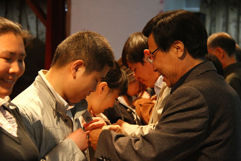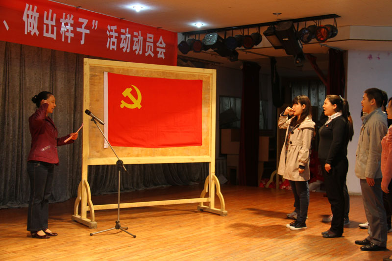 随后,在“亮出牌子、举起旗子、做出样子”活动启动仪式上,胡景团副书记代表学院党委向大家宣读了“亮出牌子、举起旗子、做出样子”党员活动倡议书。院领导和部分离退休老党员分别为今年新入党的师生党员代表佩戴党员标志徽章。全体党员在安阳市优秀共产党员许丽老师的带领下,重温了入党誓词,并在“亮出牌子、举起旗子、做出样子”活动条幅上进行了集体签名。