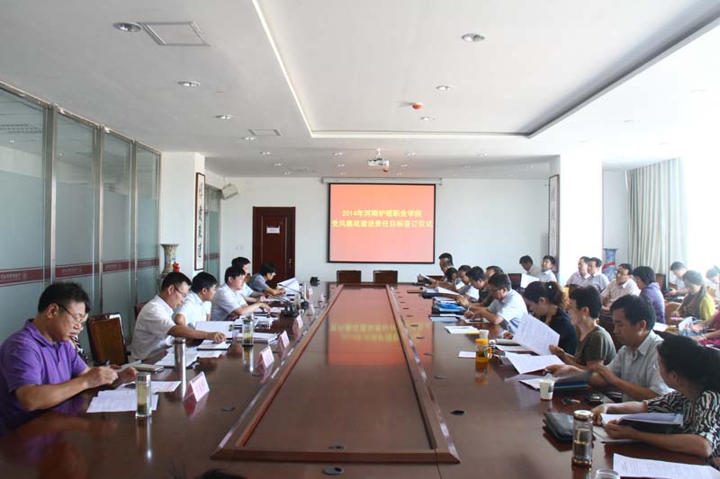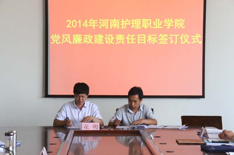为进一步贯彻落实党风廉政建设责任制,确保党风廉政建设工作的稳步推进和扎实开展,9月3日上午,学院党委书记花明同志与各处室负责人签订了2014 年党风廉政建设责任目标书。