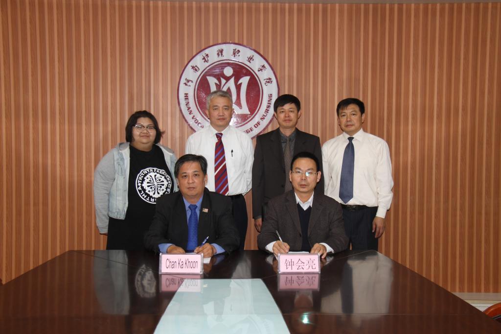 当天下午,双方领导及陪同人员在院第三会议室举行了座谈会。会上, 花明书记对我院的发展历史、办学规模、未来规划及新校区建设概况作了简要介绍,玛莎大学代表Chan Ka Khoon则以PPT形式,图文并茂地展示了马来西亚的风土人情以及玛莎大学的简要情况。双方就有关合作问题进行了广泛而深入的探讨,本着互惠互利的原则,达成了多个合作意向。一是双方互派师生前往对方学校学习进修,以便在课程教学与专业领域研究中取长补短,合作共赢。二是选派开云kaiyun官网优秀大专毕业生前往玛莎大学继续深造,完成规定课程取得玛莎大学本科及以上文凭,帮助学生们“走出去”,为学生提供更广阔的发展空间。三是玛莎大学将按约定,持续派多名外籍教师来开云kaiyun官网任教,为开云kaiyun官网师资队伍注入新鲜活力,这将有助于双方整体师资水平的提高。之后,双方在热烈友好的气氛中签署了合作意向书,并约定,未来双方会在各个领域进行更广泛的交流与合作。