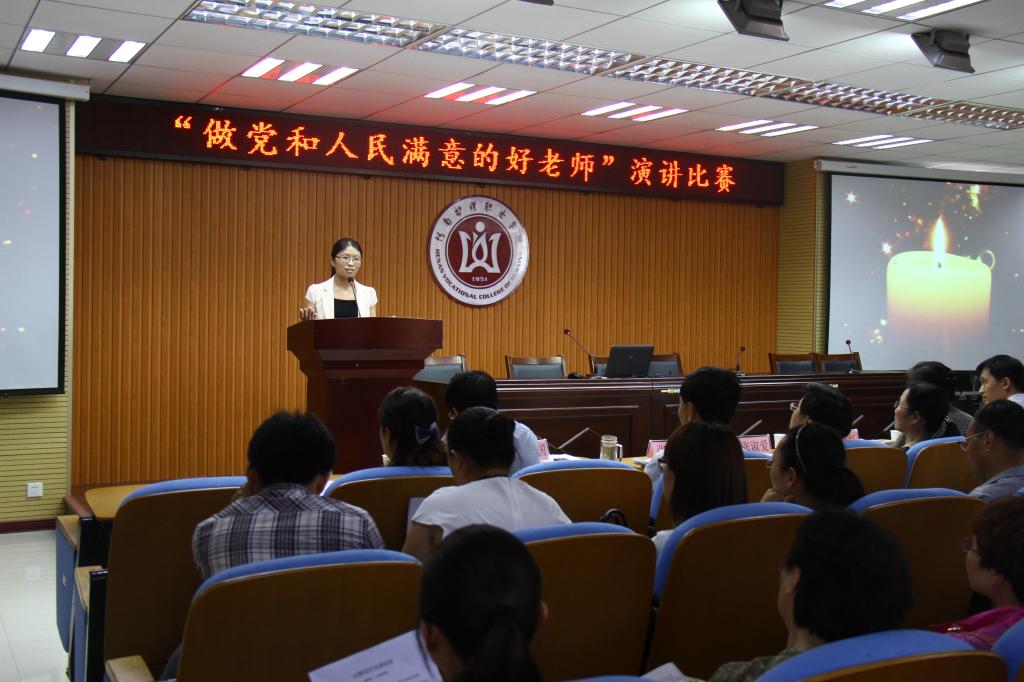 为进一步加强和改进师德建设,落实学院党委在全院组织开展的“做党和人民满意的好老师”师德主题教育,丰富教职工的精神文化生活,经过前期的动员和筹备,5月27日下午,“做党和人民满意的好老师”师德主题演讲比赛在多功能报告厅圆满举办。学院领导张淑爱、张官印、申培红及部分中层干部和全体专兼职教师观看了比赛。