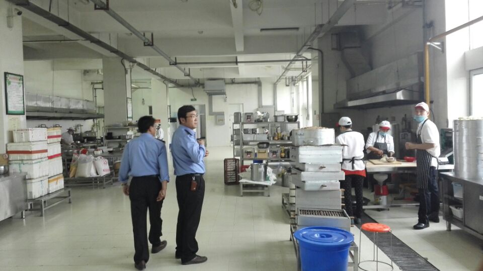 检查人员首先检查了学院的超市和蛋糕房,认真查看了超市和蛋糕房的经营许可证、商品价格、进货索证等内容,然后详细检查了学生餐的厅环境卫生、餐饮服务许可证、管理制度、从业人员证照、进出货台账、食堂清洗消毒、加工管理制度等内容并安装了餐饮管理信息公示栏。