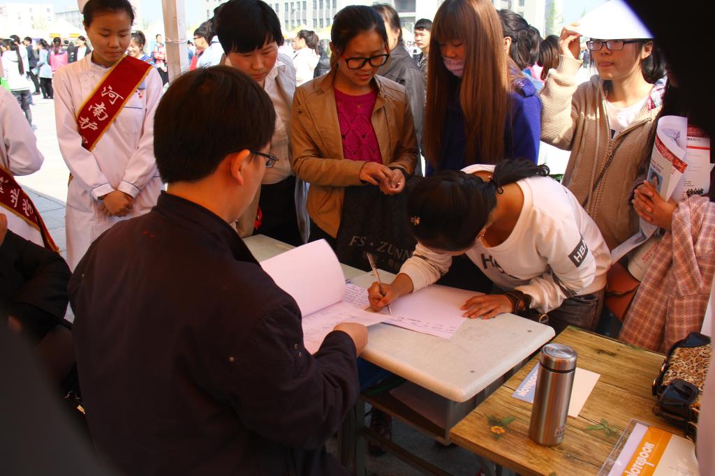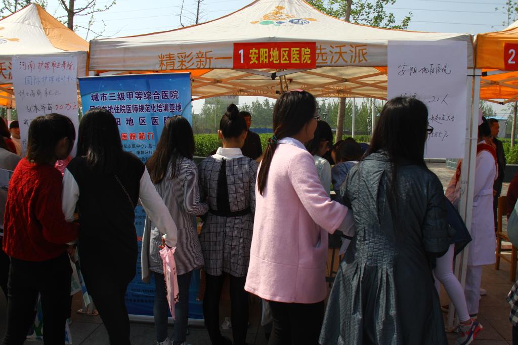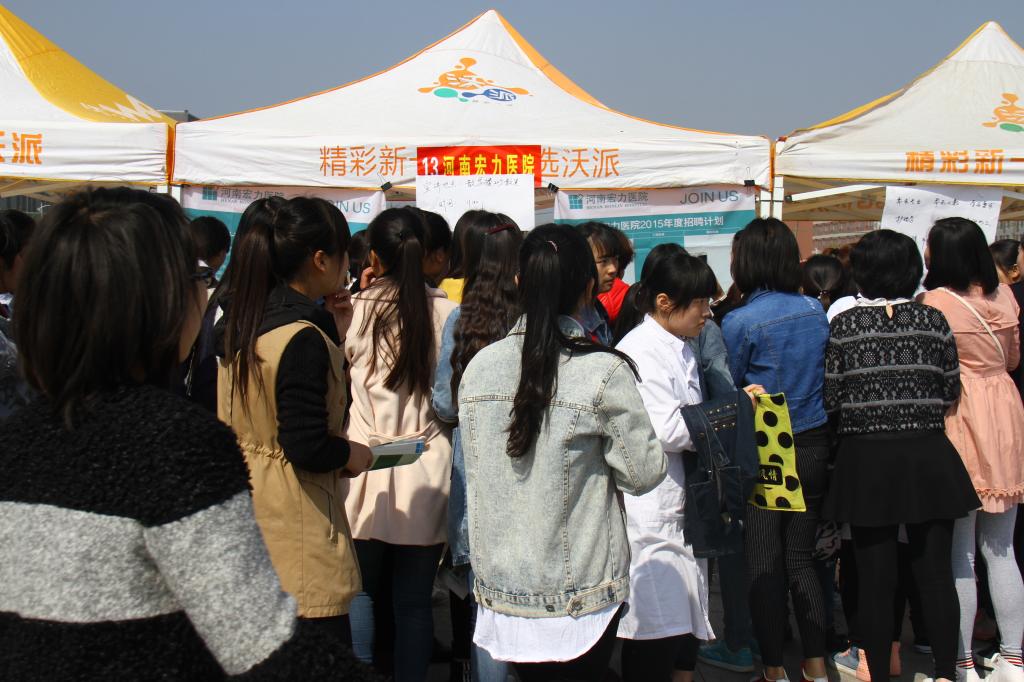 招聘会现场人群熙攘,秩序井然。与以往毕业生供需见面会相比,此次参加招聘会的单位质量高、分布广,包括安阳市地区医院、安阳市第二人民医院、河南省肿瘤医院鹤壁分院、河南宏力医院、开封市第二中医院、河南省第二慈善总医院等35家地市级以上医疗卫生单位。此外,我院毕业生拥有良好的择业观,秉着“先就业再择业”的观念,省内外大型医疗器械公司及医药公司(如:郑州恒钻齿科技术开发有限公司、北京正和口腔门诊部、河南君和实习股份有限公司等)也受到同学们的青睐。本次参加招聘会的毕业生共有650余人,很多同学在招聘现场向用人单位递交了简历,370余名毕业生与用人单位达成了初步就业意向。
