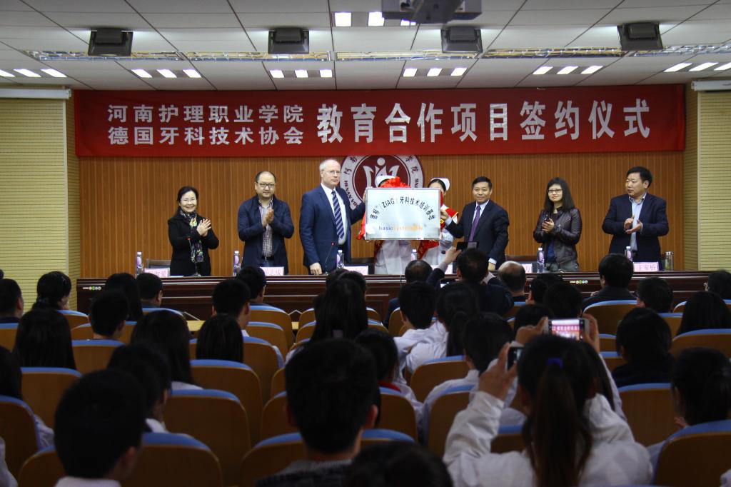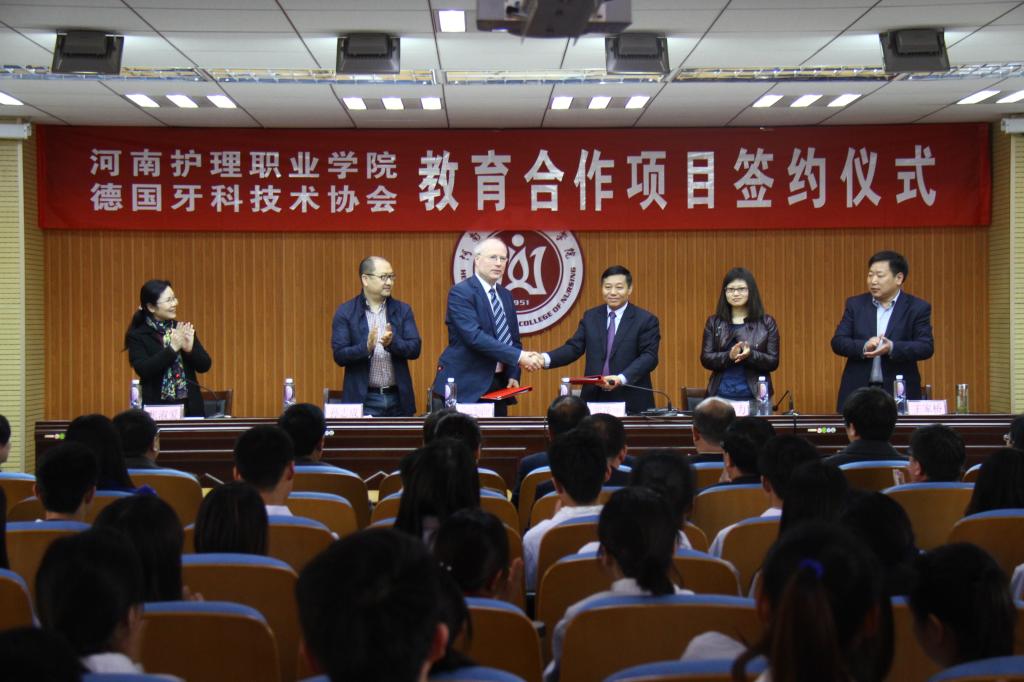 “引进‘德标牙科技术培训体系’项目,是学院通过改革和创新推动口腔技术专业建设的一项新举措,也是学院探索国际化教育模式的一次新尝试!”开云kaiyun官网院长郭茂华说,口腔技术专业是学院重点建设的骨干专业之一,有着较长的发展历史,具备较强的办学条件。德国牙科技术协会拥有世界领先的口腔专业教学理念、先进的教学方法和一流的人才培养模式。与德国牙科技术协会合作,采用德国牙科技术标准培养学生,能使口腔技术专业的学生用国内的学费标准,学习并掌握德标口腔修复制作规范、生产流程、技术及理论要求,成为适应国际需求的高素质牙科技师,并可以赴国外继续深造和发展,实现国际岗位高薪就业。这对实现学院口腔技术专业教学与国际接轨、拓宽毕业生就业渠道将起到积极地推动作用。同时,也将为学院在“立足河南、服务全国、走向世界”的发展道路上注入新的动力。
