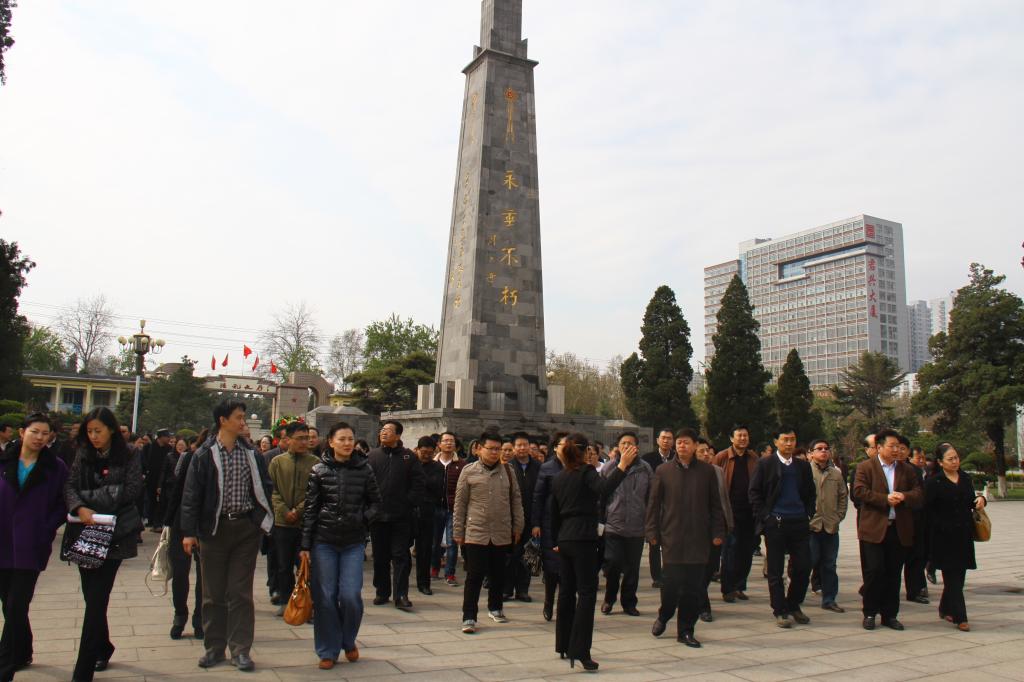 学院全体党员首先在人民烈士纪念碑前进行祭扫活动,活动由党委副书记、纪检委书记胡景团主持。学生党员代表向革命先烈敬献花圈,全体党员列队肃立,向革命烈士默哀、鞠躬致敬。党委书记花明整理挽联并发表重要讲话。他希望全体党员不忘历史,珍惜现在,以这次祭扫活动为契机,继承和发扬革命先烈们坚忍不拔、英勇不屈的革命精神,前仆后继、不怕牺牲的进取精神,不求索取、一心为民的奉献精神,充分发挥党组织在各项工作中的政治核心作用和共产党员的先锋模范作用,进一步加强基层党组织推动科学发展、促进校园和谐、服务师生群众的能力,谱写学院转型发展的新篇章。