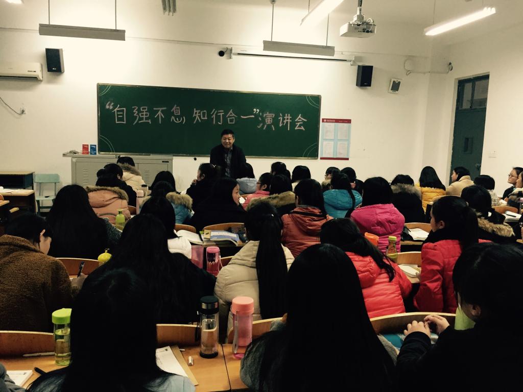 班会在轻松而热烈的气氛中进行,同学们积极发言,从学习生活、顶岗实习、护士资格证考试、职业规划等方面谈了自己对“自强不息,知行合一”的认识。郭茂华院长认真倾听每一位同学的心声,并围绕“自强不息,知行合一”的话题,与大家进行了亲切交流。他强调,作为职业院校的学生,熟练掌握技能是打开就业大门的金钥匙,“知行合一”,不仅要认知,尤其应当实践,在实践中更好的理解和巩固书本上的知识;而且要在实践的基础上再认知、再实践;既不是以知来吞并行,也不是以行来吞并知。最后,郭茂华院长将“自强不息,知行合一”这句话送给大家,作为15大专24班的班风。