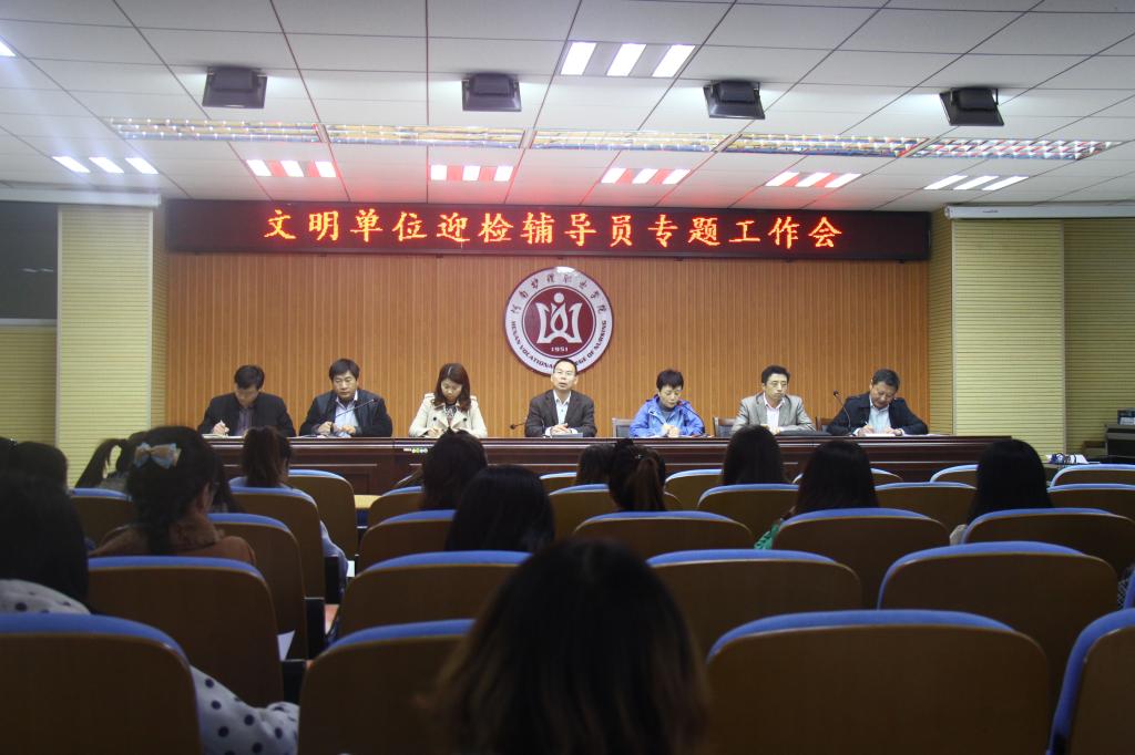 10月22日下午,我院在多功能厅召开文明单位迎检辅导员专题工作会。副院长钟会亮出席会议。学生处、保卫处、各系总支书记以及全校辅导员60余人参加。会议由学生处处长李艳芳主持。