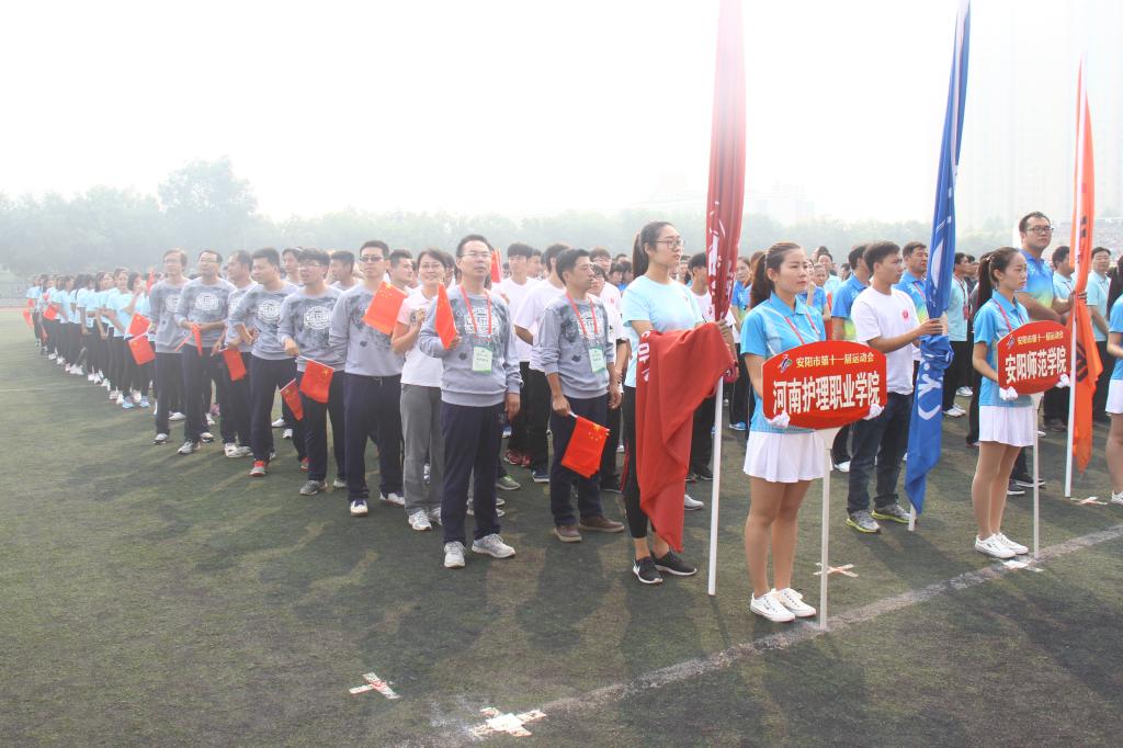 “突破自我、超越极限、护理学院、勇夺桂冠”,喊着嘹亮的口号,排着整齐的队伍,迈着矫健的步伐,9月19日上午9时,我院由20名教师、100名学生组成的方队参加了安阳市第十一届运动会开幕式。