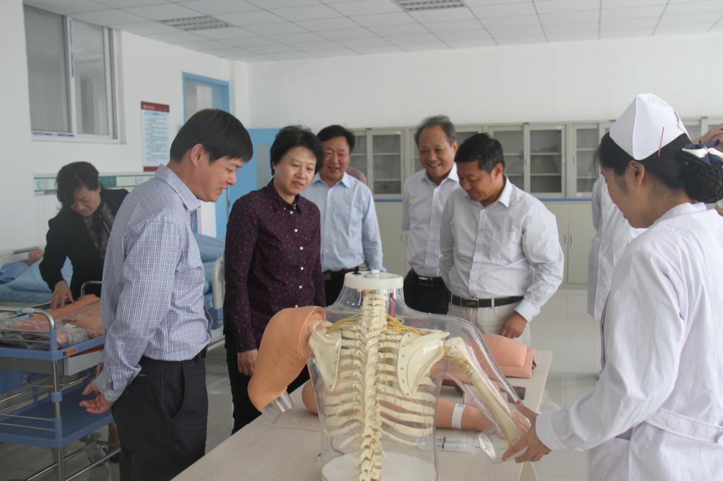 2015年9月14日上午,省发改委张伟处长、市发改委杨奇才主任、孙红梅科长一行惠临学院视察指导工作,院领导花明书记、郭茂华院长、王家桥副院长陪同,先后参观了护理实训楼、教学楼及校园规划与建设。在基护、儿护、产护、心肺复苏、高级生命支持等实训室,在实验老师生动有趣的讲解和引导下,张伟处长饶有兴趣的一一观摩高仿真模型,详细了解实验实训设备教学情况。随后,在行政楼二楼会议室举行了座谈会,就学院下一步发展思路、建设难题等进行充分的沟通与探讨。会上,院党委书记花明、院长郭茂华分别对张伟处长一行再次表示热烈的欢迎,对省、市发改委长期给予学院的高度关注和支持表示衷心感谢,并对学院办学环境、办学规模、师资建设、教学管理等发展现状进行简要汇报,张伟处长也就新校区规划与建设相关工作提出中肯建议。