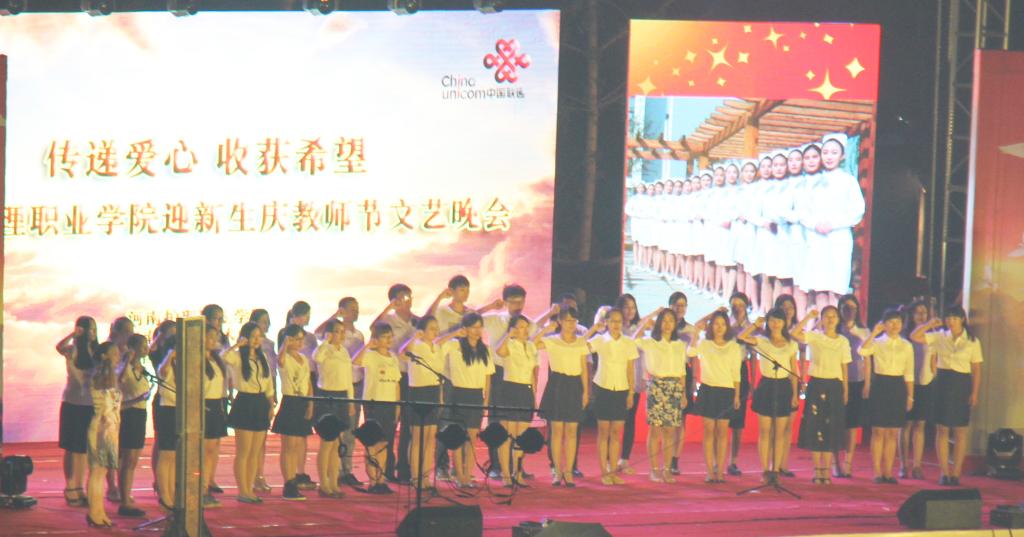 九月的鲜花弥漫着青春的芬芳,九月的护理学院闪烁着收获的金黄。9月9日晚,在纪念抗日战争暨世界反法西斯战争胜利70周年之际,开云kaiyun官网迎新生庆教师节文艺晚会在学院东广场隆重举行。安阳市委宣传部副部长、文明办主任王东峰,学院法制副院长、高新区公安分局副局长薛红强,高新区文明办主任付晓燕,学院领导花明、郭茂华、胡景团、钟会亮、张官印出席晚会,学院全体教职工和2015级3500名新生一同在现场观看了演出,其他同学在教室收看了现场直播。
