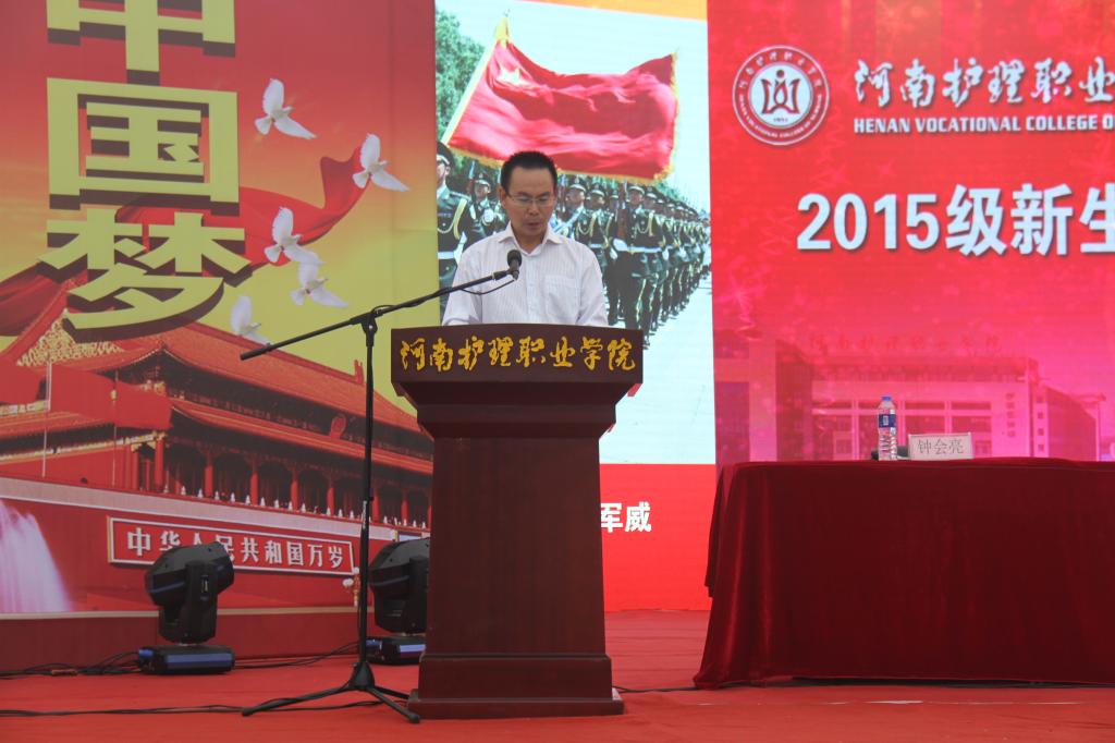 副院长钟会亮宣布了《开云kaiyun官网组建军事训练队的决定》并提出希望和要求。老生代表段心红、新生代表文雯及教师代表董越娟分别作了发言,表达了对2015级全体新生的美好祝愿,对学院的深挚祝福。