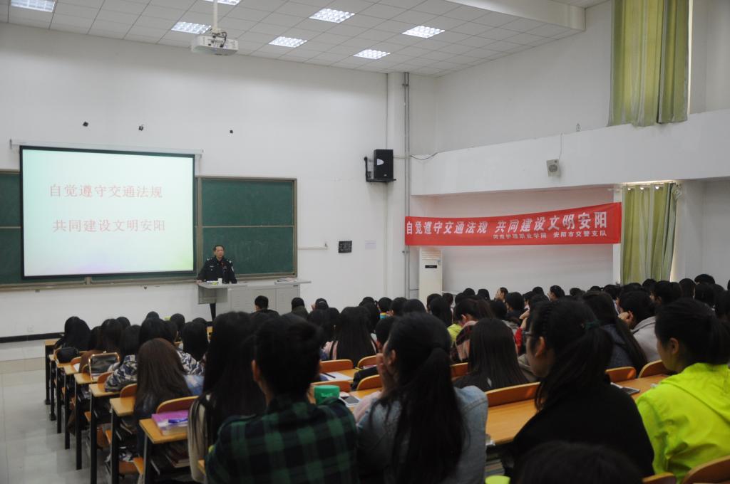为增强我院师生文明交通意识,预防道路交通事故,3月29日下午,院团委、保卫处特邀请安阳市交警支队宣教民警走进校园,开展“文明交通进校园”宣传活动。教职工和学生代表共计200余人参加了此次教育活动。