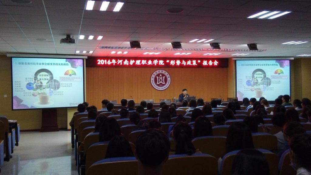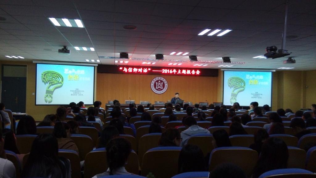 3月29日晚上,郭茂华院长以“创新:引领发展的第一动力”为题,为我院2014级、2015级大专学生讲授了新学期第二期“形势与政策”教育暨与信仰对话专题报告会。本学期,学院首次采用了现场报告和网络直播相结合的方式,利用多媒体发布平台直播讲座视频,全院共有4300余名师生同步聆听了讲座。