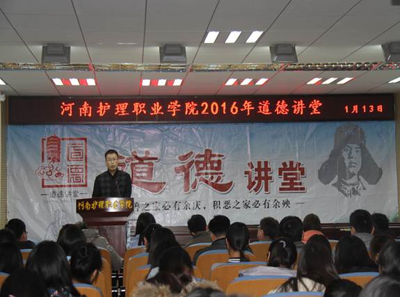 1月13日下午,机关党总支在学术报告厅举办以敬业奉献为主题的道德讲堂,机关党支部全体教师和学生代表参加了此次道德讲堂。