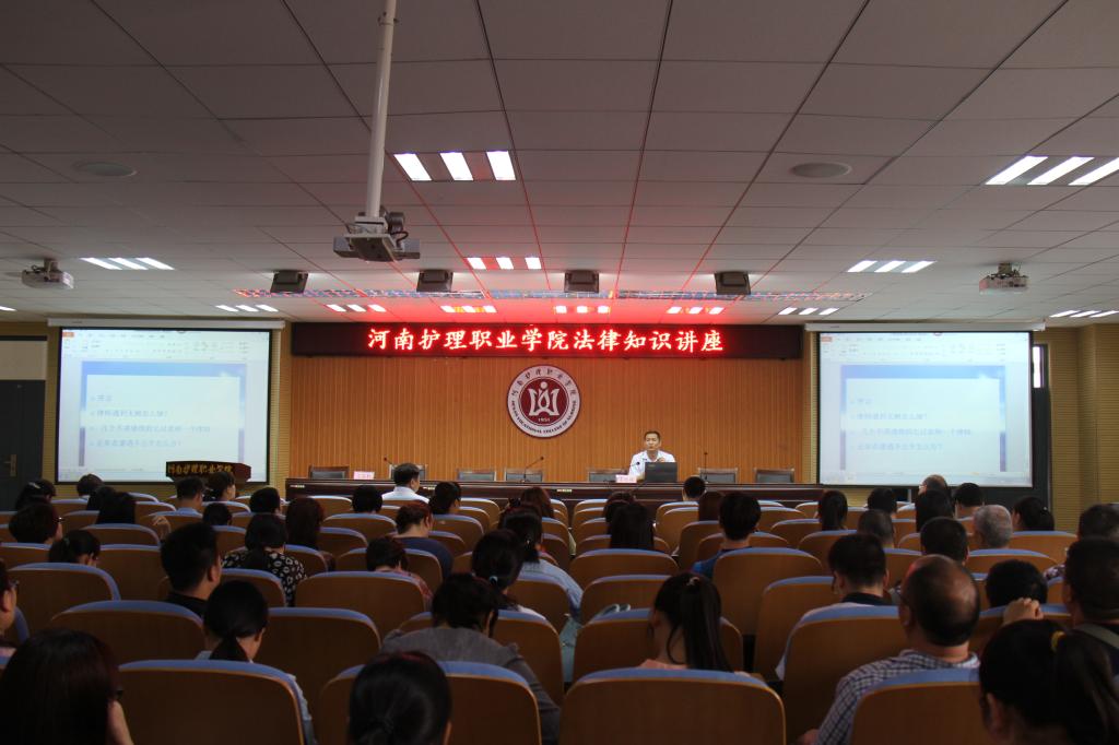 学院特别邀请了河南豫龙律师事务所李海林主任为全体教职工进行法律知识讲座。在讲座中,李主任从亲身经历的一些生动的案例为切入点,语言风趣幽默,很好的吸引了大家的注意力,他从多个角度为大家阐述习惯、规则、法律,学校法律事件预防及处理,学校突发危机事件及处理等相关法律知识。