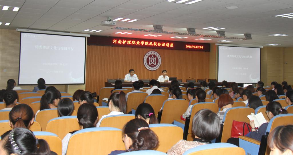 学院本次活动特邀安阳师范学院宣传部副部长徐永杰教授作为文化大讲堂的特邀专家,给全体师生带来了一场《优秀传统文化和校园礼仪》方面的文化盛宴。徐教授从礼仪的定义、分类、原则三方面对礼仪进行了解析,从仪表、见面、入座、饮食、拜贺庆吊方面阐述了传统文化对现代校园礼仪的影响和要求。徐教授指出,“腹有诗书气自华”,要做一个文明优雅的现代高校教师,养成良好礼仪习惯,多读书是最有效途径。徐教授的讲座引经据典、风趣幽默,具有极高的实用价值和现实意义。