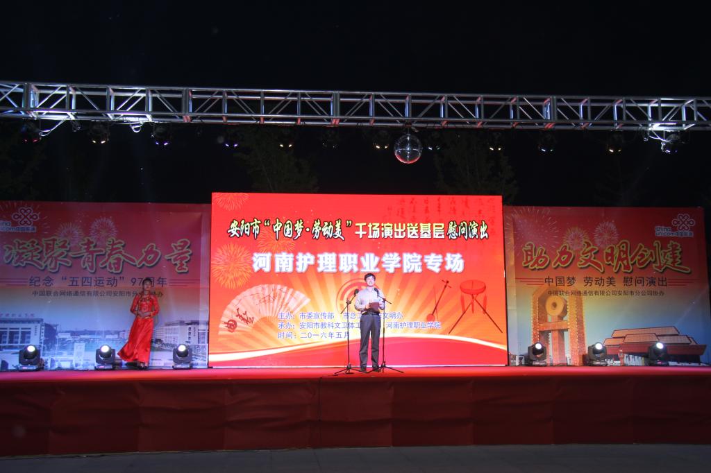 5月4日晚,“凝聚青春力量,助力文明创建”纪念“五四运动”97周年文艺晚会在学院东广场隆重举行。学院党委书记花明、副书记兼纪委书记胡景团、副院长钟会亮、副院长张淑爱、副院长王家桥与全体中层干部、教职工、学生代表共计6500余人观看演出。安阳市教科文卫体工会主席张学政受邀出席。
