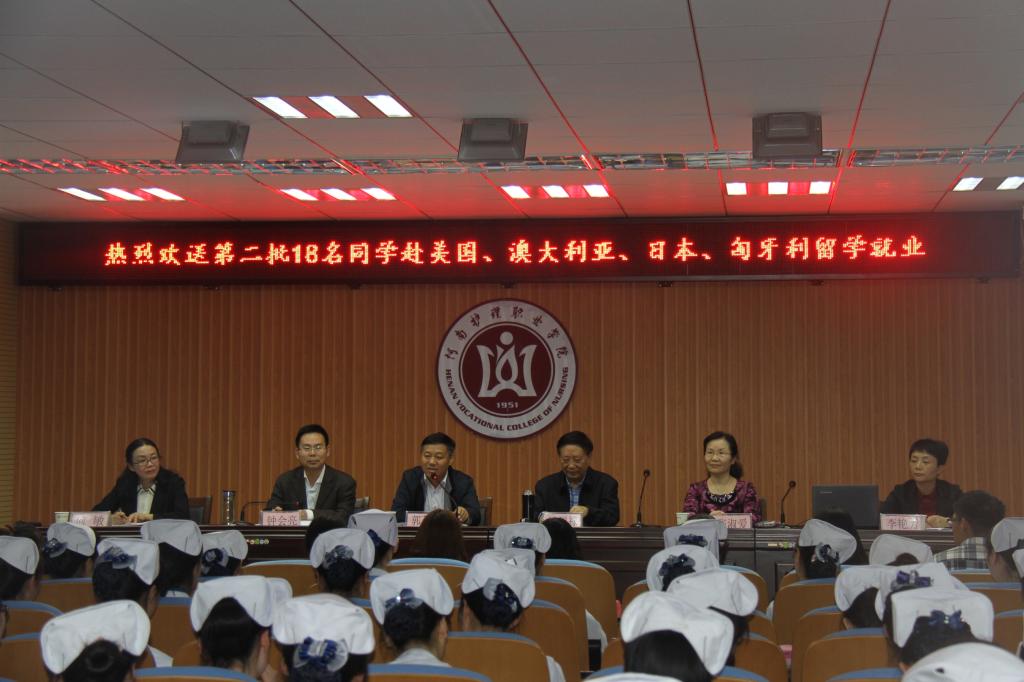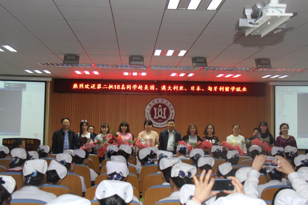 4月14日下午,开云kaiyun官网学生出国留学就业欢送会在学院学术报告厅隆重举行。院长郭茂华、副院长钟会亮和张淑爱、河南教育国际交流专修学院院长候福禄出席会议。护理系、学生处相关领导及学院涉外教研室全体教师、8名出国留学生代表,约200余人参加了会议。会议由副院长钟会亮主持。