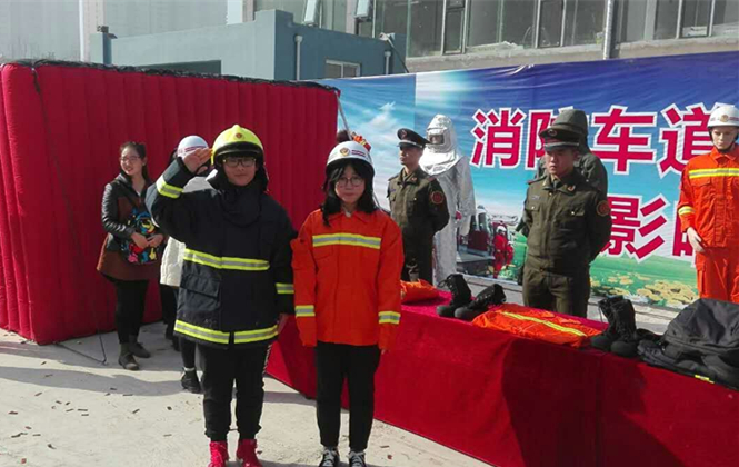在启动仪式上,现场举行了消防灭火演练。此次演练采取火灾扑救及疏散救人为主,以电动车作为试验对象,模拟电动自行车发生火灾事故的危害性,当事故发生后消防救援人员组织人员迅速疏散撤离,现场还进行了电动车火灾扑救演示。快速穿上消防战斗服是基本功中的基本功,在消防器材展示过程中,我院学生还试穿了消防服,“这腰带怎么系呢?”“头盔好重!”“面罩要怎么戴上去?”,看似简单的消防服穿戴,到了学生们身上就显得困难重重,最后在消防救援人员的耐心指导下,试穿的学生们有模有样地穿上了消防服。在仪式结束后,我院学生及老师还接受了记者的采访,不少师生都表示体验到了消防员的辛苦,并学习到了很多消防知识,以后会更加注意防范火灾事故的发生。