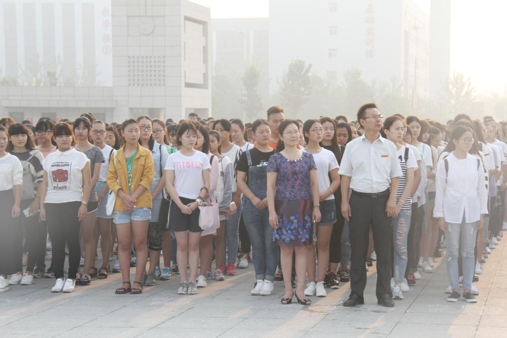 秋风送爽,国旗飘扬。9月5日上午,迎着朝阳,学院在东广场举行2016年秋季新学期新生升国旗仪式。院长郭茂华,副院长钟会亮、张淑爱,学生工作处、团委、各系党总支负责同志、2016级全体新生及辅导员和新入职的36名新教师共同参加仪式。
