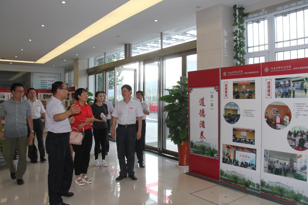 8月23日,安阳市高新区文明办付晓艳主任一行五人莅临我院,对学院创建省级文明单位工作进行检查验收。学院领导花明、胡景团、钟会亮、张淑爱陪同检查。