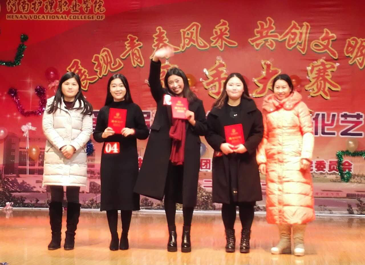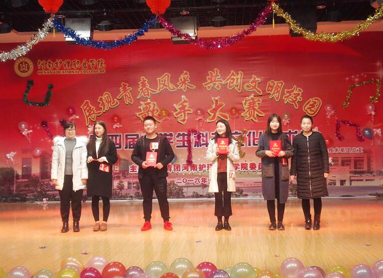 | 团委赵露露老师、护理系王新老师为获得三等奖选手颁奖 |