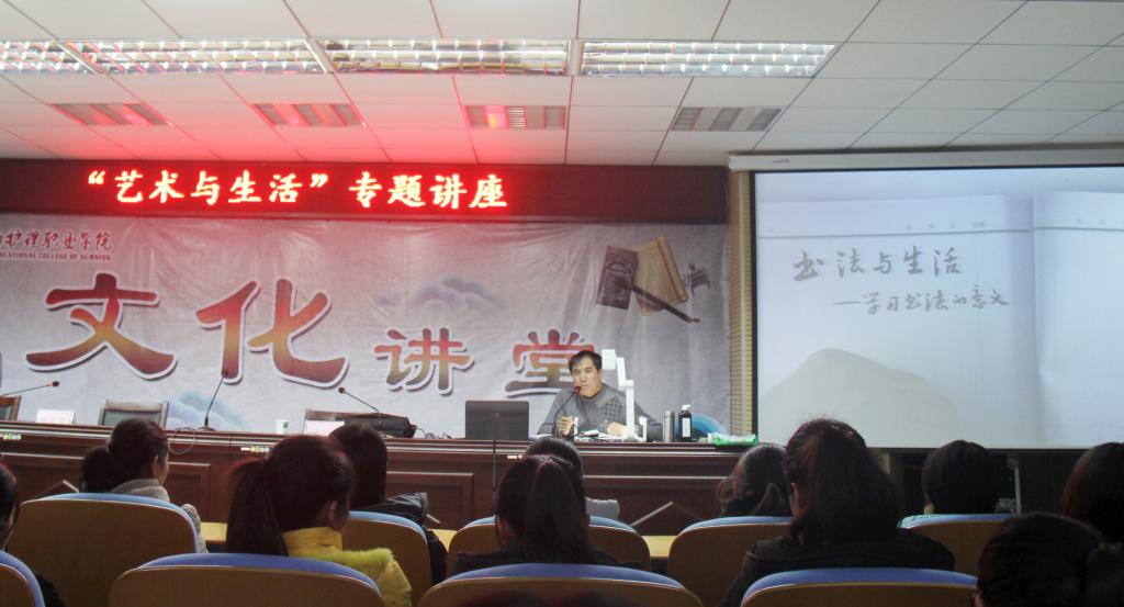 此次书法笔会,学院还特邀中国书法家协会会员曾鉴为我院“墨香书画社”的学员们作了“艺术与生活”的书法讲座,曾老师从书法是什么、书法怎么写、书法怎么看三方面现场给予广大同学们细致的指点与交流。