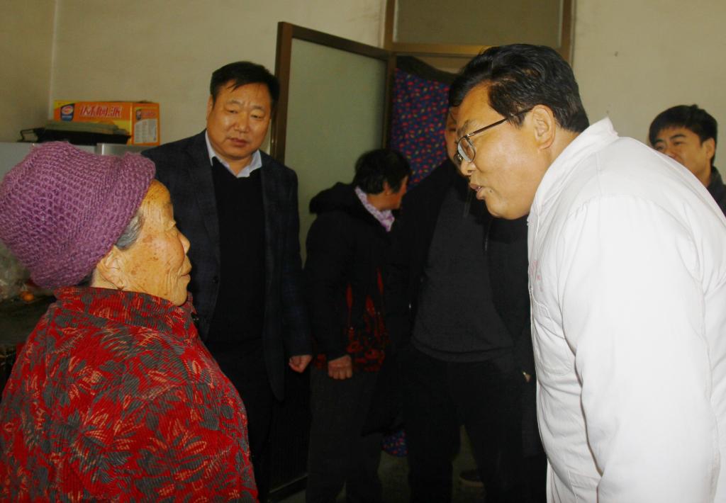 王院长一行在王官屯村支书彭世杰的陪同下,冒着严寒,首先探望了生活困难的彭凤明、宋井只、胡宝贝三位高龄老人,给他们送去了大米、食用油和牛奶等慰问品。王院长每到一处,热心询问老人的身体和饮食近况,安排医务人员给老人做量血压、测心率等健康检查,并代表学院送去了对老人的祝福,祝愿他们健康长寿,老有所依,老有所乐。在80多岁的宋井只家中,王院长满怀深情的与她交流谈心,看到老人精神饱满,鼓励老人保持好的心态,保持好的饮食规律,有困难及时向村委会或学院反映,老人及其家人向王院长一行表示感谢。