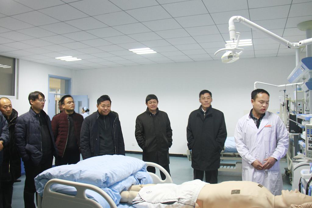 郝主任一行在学院领导的陪同下,参观了学院护理实训楼和教学楼,对我院先进的实验器材、优越的教学环境给予了极大赞赏。在模拟ICU病房、模拟手术室等地方,郝主任不时驻足察看,认真聆听讲解员对实验操作原理的介绍,并询问了相关情况。