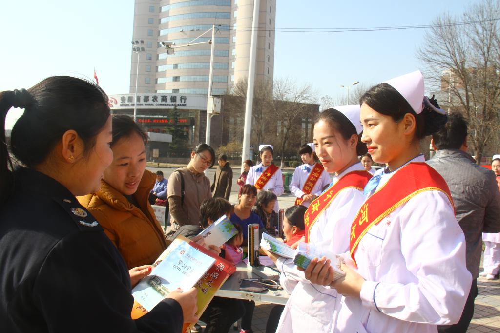 3月3日上午,高新区所辖部分优秀文明单位在银杏广场集中开展学雷锋志愿服务活动。护理系党总支书记王昆仑带领369志愿服务队代表学院参加了本次活动。