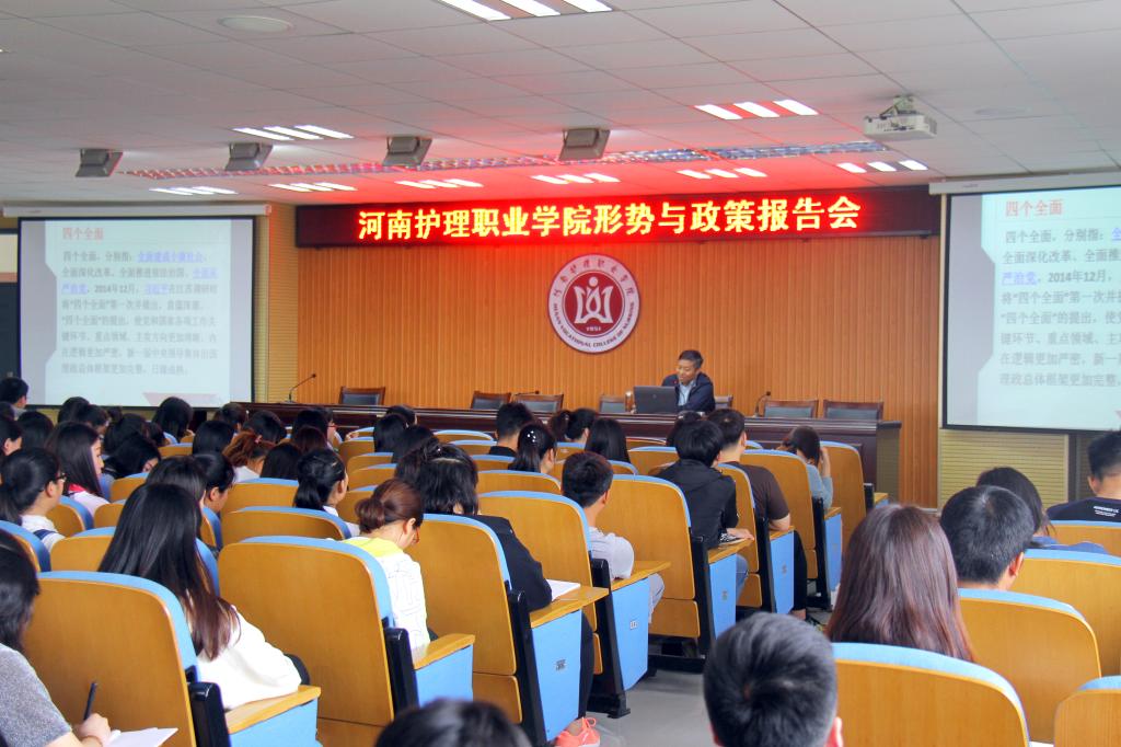 形势与政策专题报告会是近年来我院思想政治理论课教学改革的创新性举措。学院党政领导坚持亲力亲为给学生做报告,既是落实教育部《高校思想政治理论课建设标准》的文件要求,也是我院贯彻落实全国和全省思想政治教育工作会议精神的真实体现。