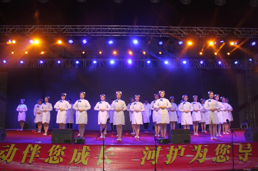 5月11日晚,为庆祝第68个“五四青年节”和第106个“国际护士节”,由护理系承办的表彰文艺晚会在学院体育场隆重举行。学院领导花明、郭茂华、胡景团、钟会亮、张淑爱、王家桥、张远出席晚会,学院中层干部和全体教职工、专兼职辅导员、学生近7000人现场观看晚会。