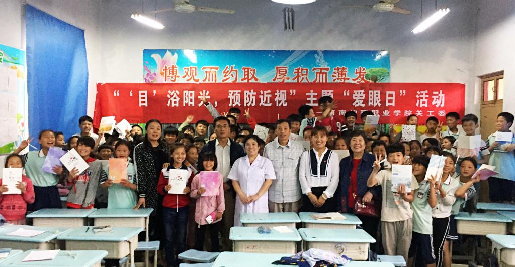 带着对广大少年儿童健康成长特别是农村留守儿童的关心和关爱,在第22个“全国爱眼日”来临之际,6月5日下午,学院关工委的部分老同志代表冒雨驱车来到安阳县韩陵镇东于曹中心小学,与孩子们一起开展了以“‘目’浴阳光预防近视”为主题的“爱眼日”活动。