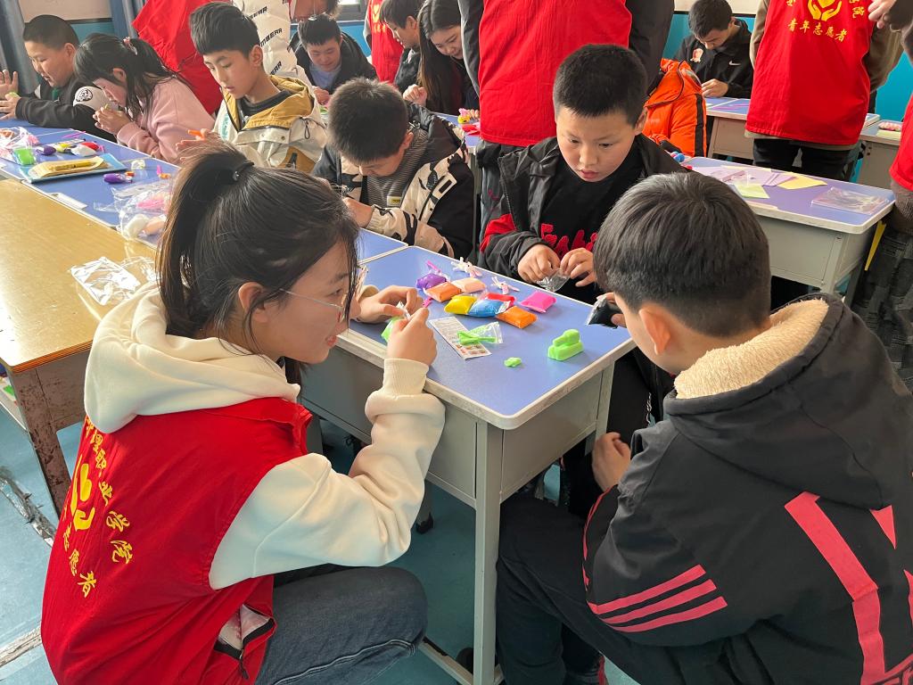 为了让孩子们度过一个愉快的下午,经过前期充分的沟通与了解,师生志愿者们不仅带上了彩泥、蜡笔、画本等孩子们喜欢的文具,给小朋友分享了好吃的棒棒糖和饼干,还特意练习了几首儿歌准备和孩子们一起唱。