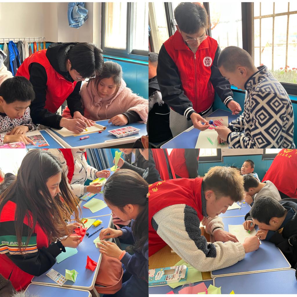 虽然是初次见面,志愿者们和孩子之间还稍显生疏,但当大家一起唱响孩子们最喜欢的儿歌时,陌生感立刻消除了,几首歌结束后,大家已经打成了一片。随后,志愿者教孩子们折纸、做手工,大家互动游戏很开心。