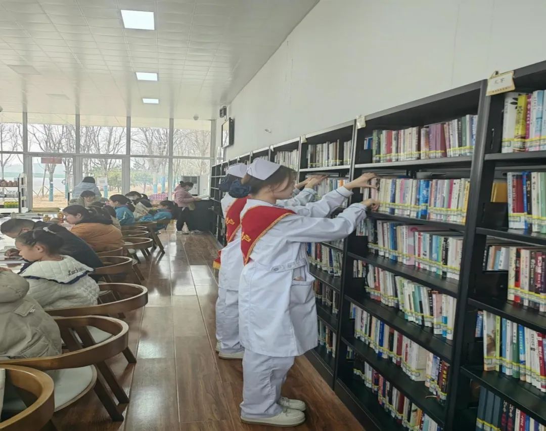 护理系369志愿服务队走进安阳甲骨文书屋。师生齐动手,清理打扫书屋、帮助找寻相关书籍,对借阅群众热情指导,对书籍进行分类归位,让“雷锋精神,人人可学;奉献爱心,处处可为”。