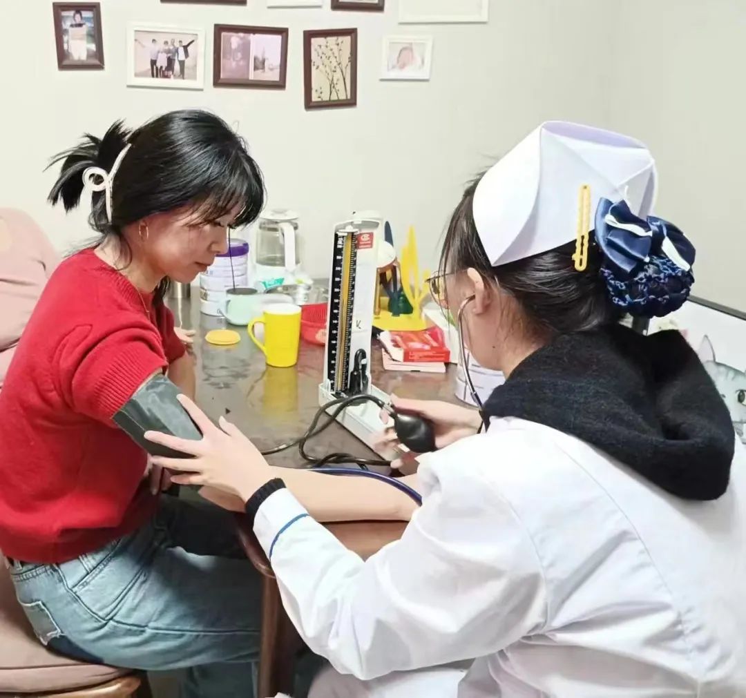 志愿者入户为社区居民测量血压