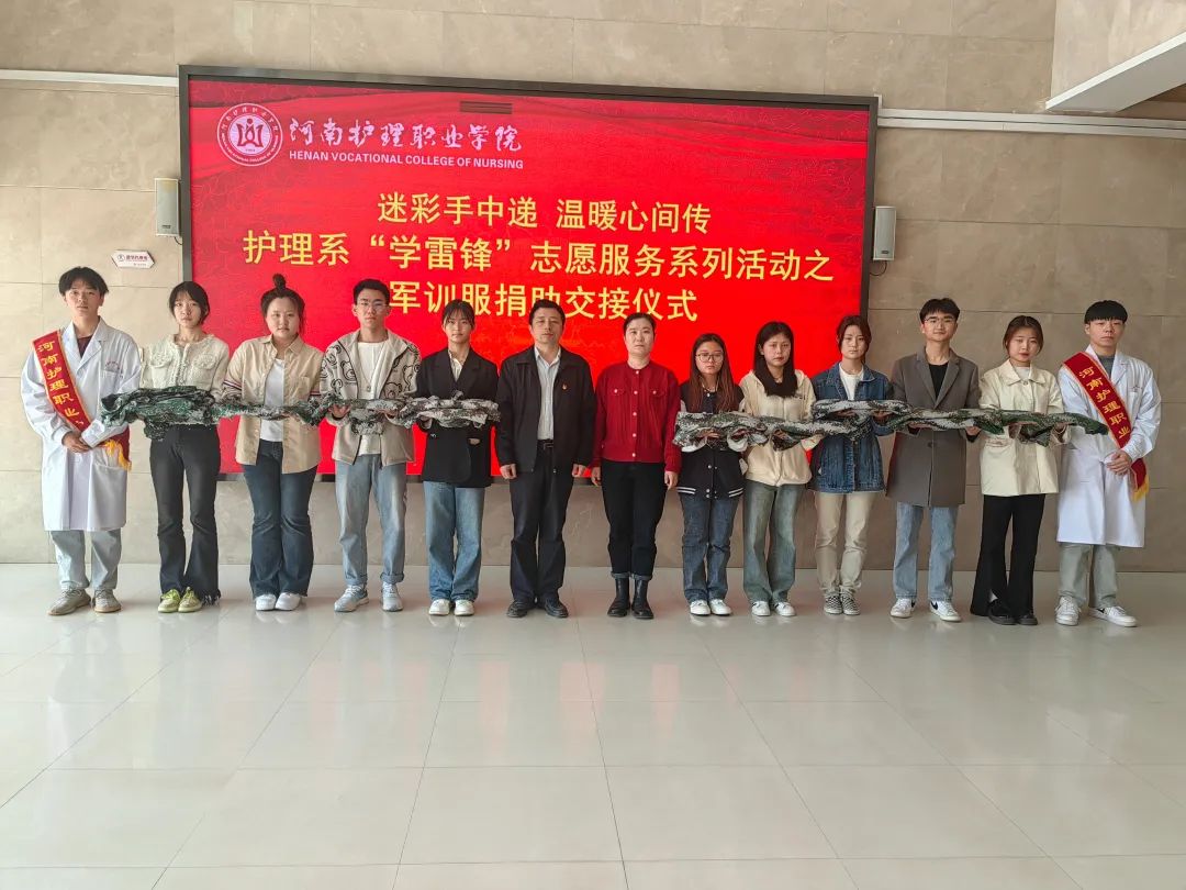 护理系党总支书记为军训学生分发爱心迷彩服