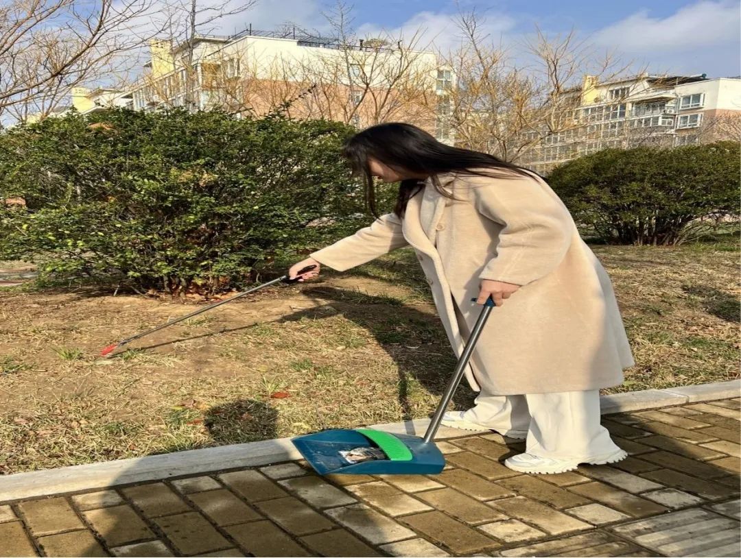 志愿者进行校园清扫志愿服务