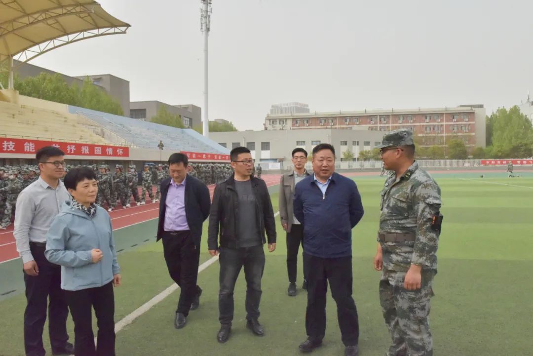 4月11日下午,副院长王家桥在学校武装部全体人员陪同下,来到军训现场,看望慰问承担开云2022级学生军训的安阳军分区军训教官团。