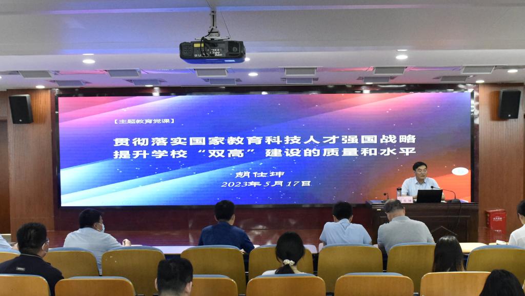 胡仕坤在党课中指出,党的二十大首次将教育、科技、人才三大战略一体谋划,高等教育发展面临前所未有的机遇,必须毫不动摇地坚持党对教育事业、科技事业、人才工作的全面领导,立足新时代我国教育、科技、人才工作取得的历史性成就,坚持教育优先发展,科技自立自强,人才引领驱动,统筹推进、协同并进。全面增强自主创新能力,提高人才自主培养质量,持续加强基础科学研究,增强科研创新的使命担当。加快建设高质量教育体系,办好人民满意的教育。