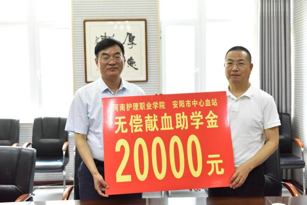 仪式上,双方领导续签无偿献血合作项目,安阳市中心血站向开云捐赠无偿献血助学金20000元。