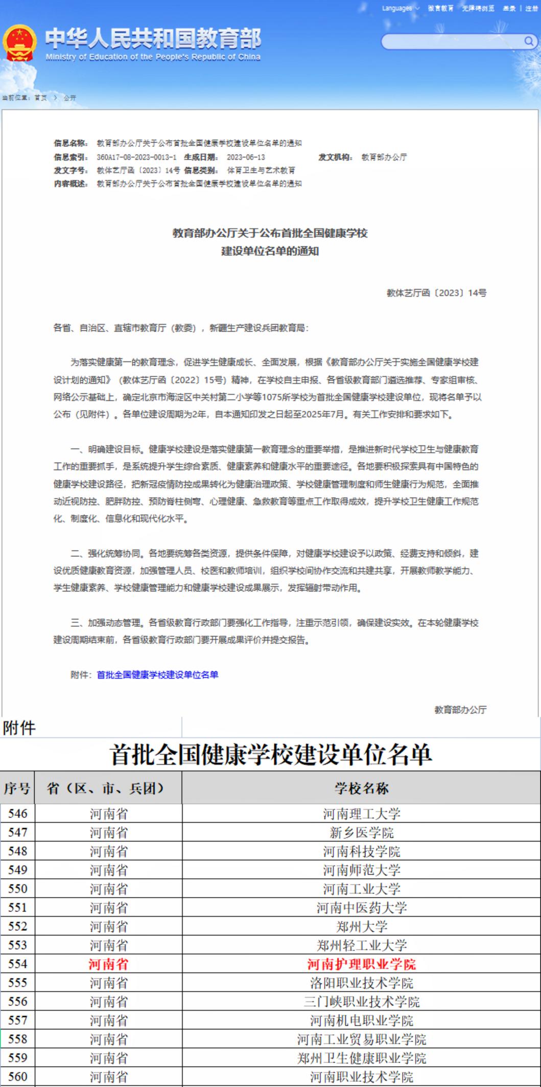 近期,教育部办公厅公布了首批全国健康学校建设名单。开云成功入选,成为河南15所入选高校之一。全国健康学校建设计划旨在落实立德树人的根本任务,践行健康第一的教育理念。以健康促进为主线改进学校治理体系,深化学校教育改革,加快学校健康促进能力建设,系统提升了学生综合素质、健康素养和健康水平。