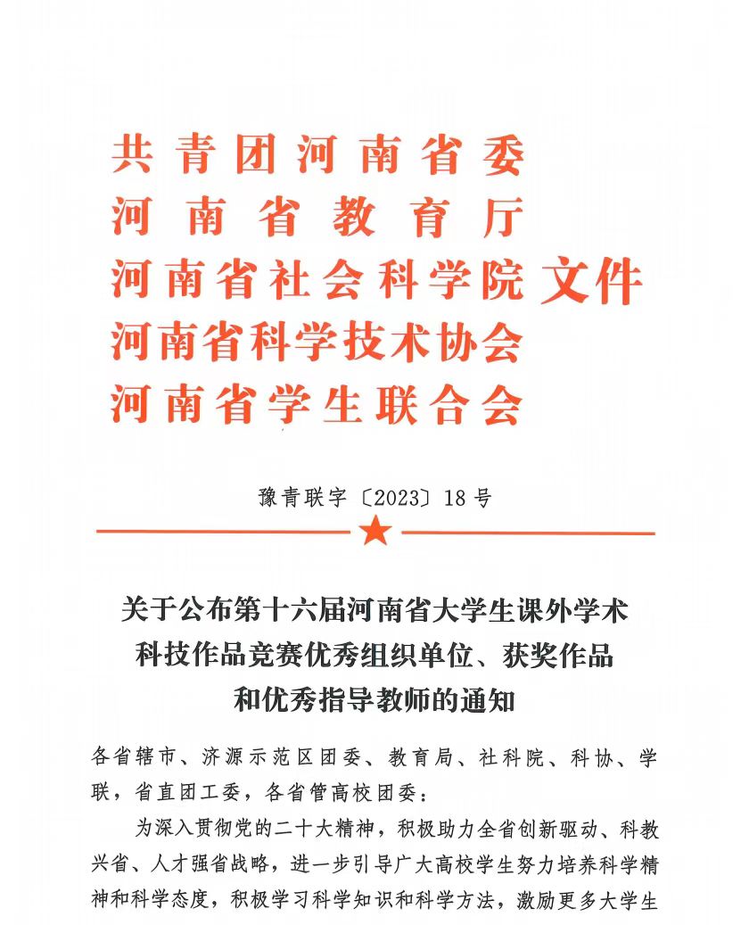 近日,喜讯传来,由共青团河南省委、河南省教育厅、河南省社会科学院、河南省科学技术协会、河南省学生联合会共同举办的第十六届“挑战杯”河南省大学生课外学术科技作品竞赛结果公布,开云在此次省级比赛中,共斩获二等奖2项、三等奖6项。