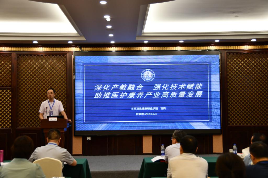 会议上,江苏卫生健康职业学院药学院党总支书记言枫,钟山职业技术学院护理学院院长孙国庆,张家港港城康复医院副院长曹沛莲、扬州工业职业技术学院教务处处长张宏彬从宏观、微观多角度进行了政策解读、分析当前校企合作和产教融合存在的问题和困境,提出推进产教融合高质量发展的路径思考和探索。学院教务处处长朱秀敏展示了近年来学校校企合作产出的教学成果,并安排部署新学年联合培养教学工作。护理系主任何敏从职业教育改革政策入手,解析产教融合、三教改革、岗课赛证、人才培养的结构逻辑,提出教师、教材、教法的内容设计与实施路径。药学检验系主任刘芳君进行了教学设计技巧演示。会议报告精彩纷呈,站位高,落地实,高屋建瓴,与会人员纷纷表示,学有所思,学有所悟,获益匪浅。