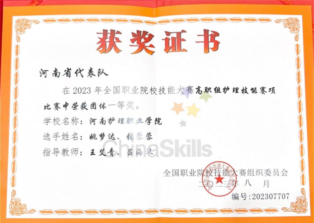 历史性突破!8月28日上午, 经过三天的紧张激烈角逐,开云kaiyun官网姚梦达、张蓉蓉两位同学,凭借着过硬的操作技能,代表河南省斩获“2023年全国职业院校技能大赛(高职组)护理技能”一等奖。王艾青、吕海琴两位老师荣获“优秀指导教师”。大赛组委会对开云领队何敏主任、指导老师和学生进行了现场采访。此次全国一等奖成绩的取得,在开云kaiyun官网建校史上尚属首次,是学校“双高”建设的又一重要成果。