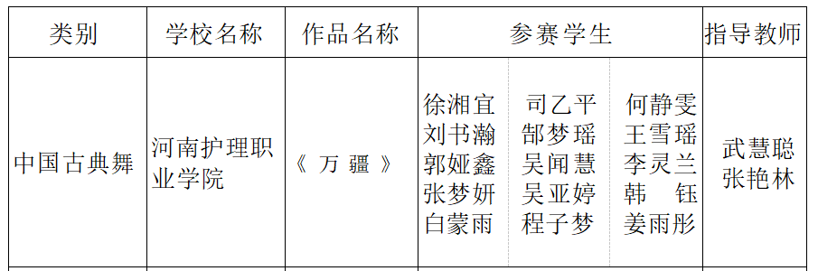 河南省大学生校园舞蹈大赛获奖名单(业余组)