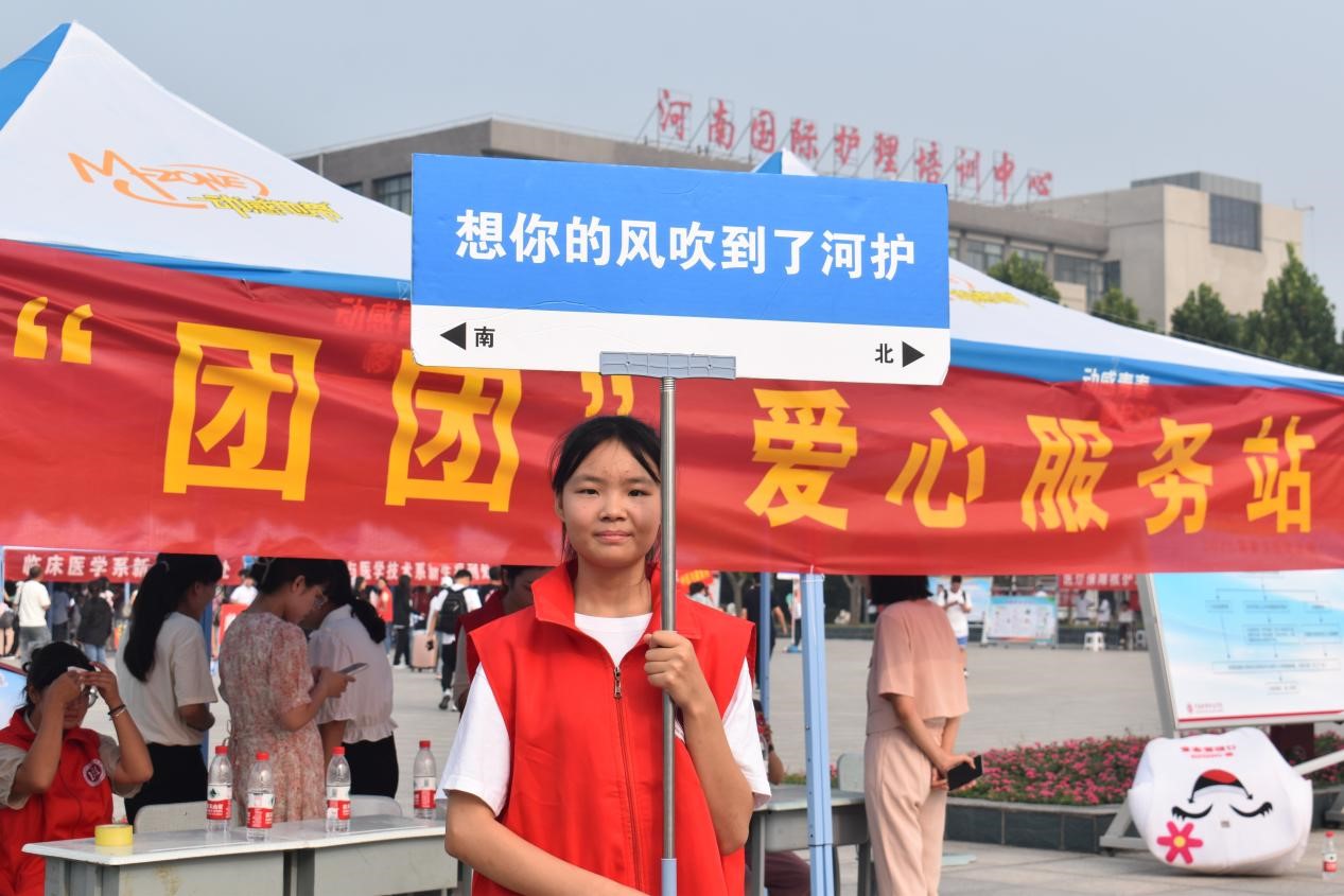 “热烈欢迎2023级新同学”“河护与你,是前庭与耳蜗,相靠相依”“让我们怀抱梦想,永记学医初心”……校园内各类迎新标语、宣传版面鲜亮醒目,空飘迎风招展,表达着对新同学的期盼,身着红马甲的志愿者们热心帮助新生搬运行李,整个校园洋溢着喜庆、美好的气氛。