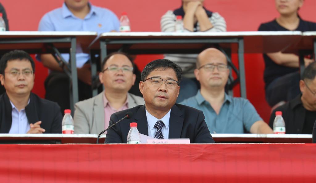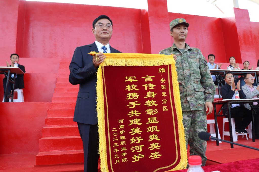 在热烈的掌声中,党委副书记、院长胡仕坤向承训部队赠送锦旗,并以《志存高远 修学务早 修身力行 守正创新》为题作总结讲话。胡仕坤代表学校全体师生,向承训全体教官,表示衷心的感谢!向参与、组织本次军训工作的各位教师,表示诚挚的慰问!向获得荣誉的集体和个人,表示热烈的祝贺!大会上,他向大家介绍了学校72年来的奋斗历程和发展建设中取得的辉煌成就,为同学们带来一堂生动的开学第一课。