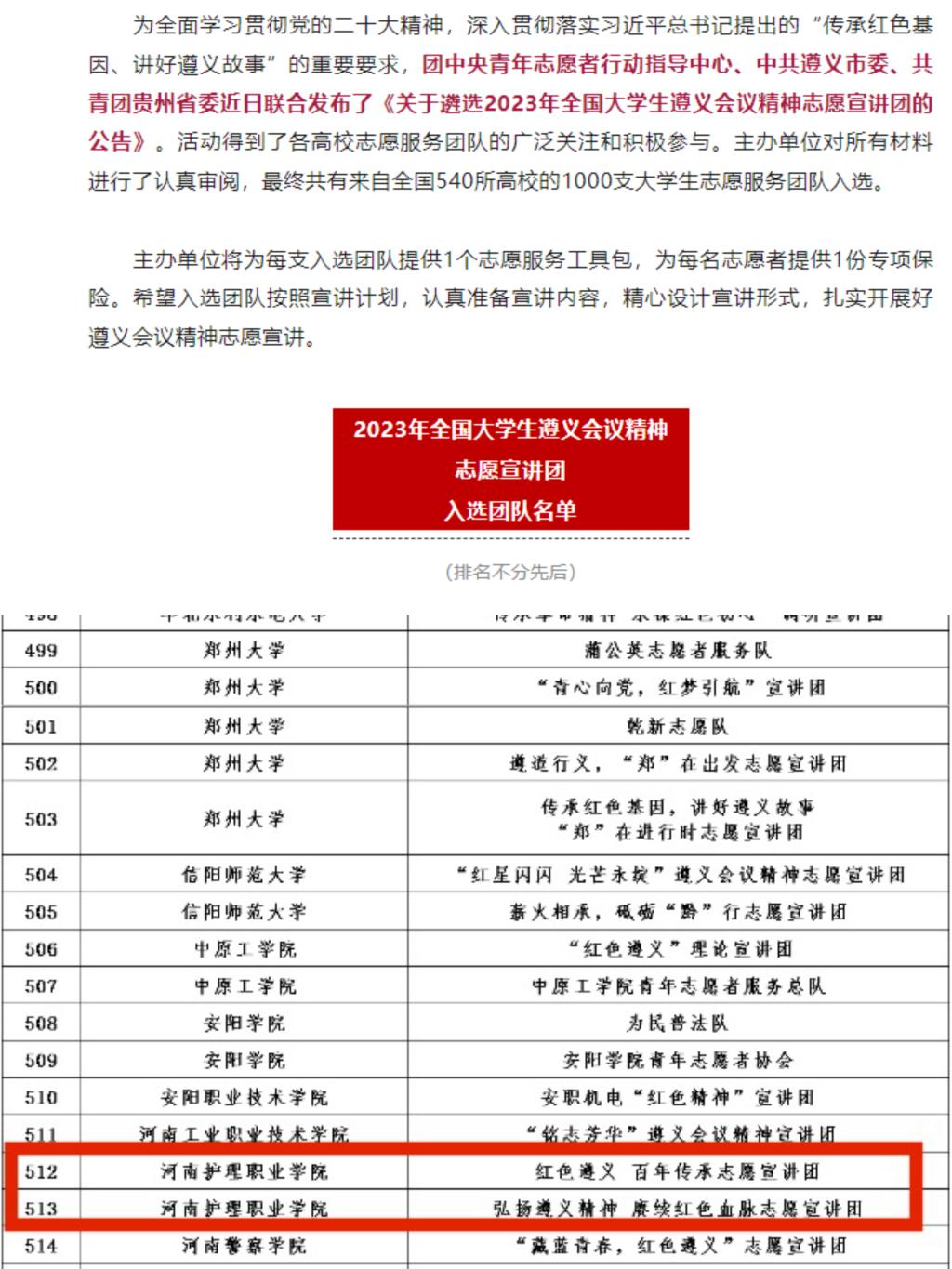 开云团委高度关注此项活动并动员各级团组织积极参与。最终,开云“红色遵义 百年传承”、“弘扬遵义精神 赓续红色血脉”两支大学生志愿宣讲团成功入选2023年全国大学生志愿宣讲团!